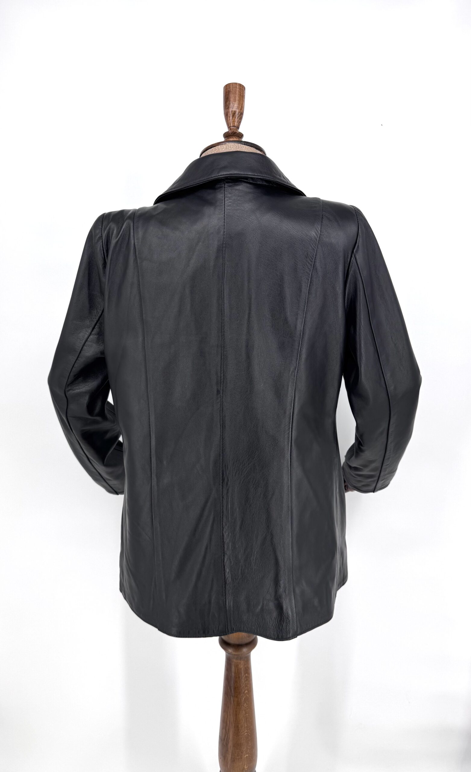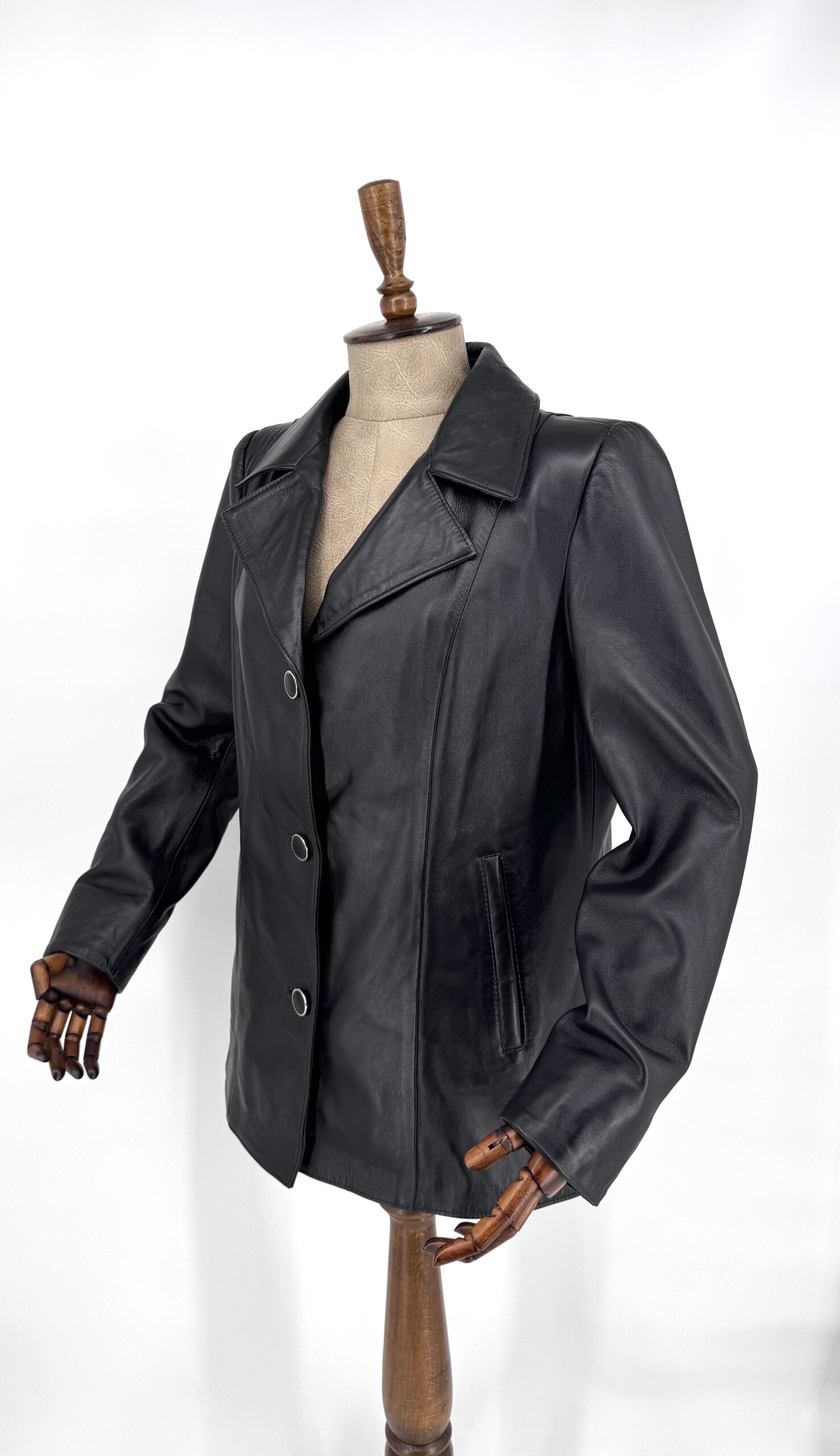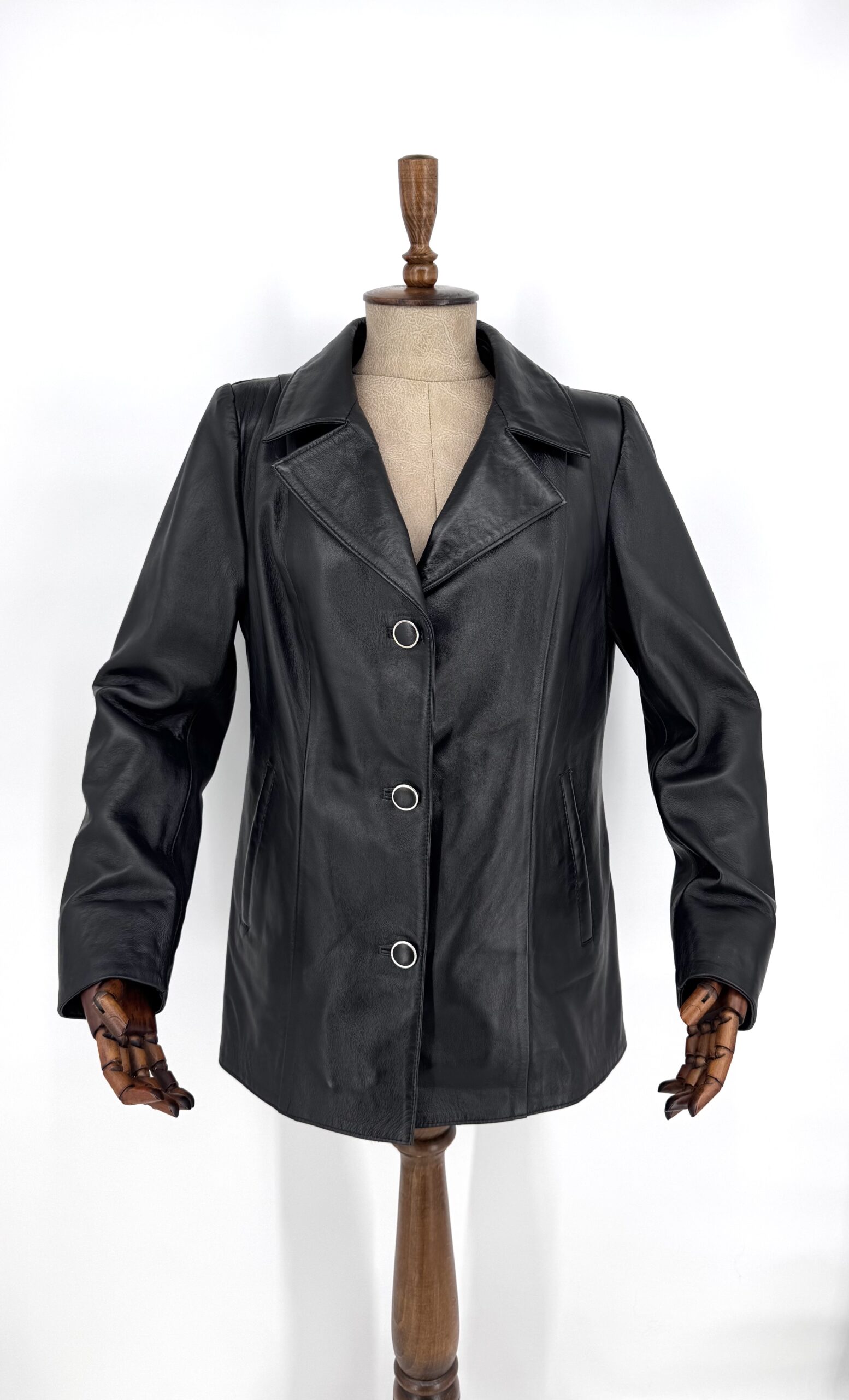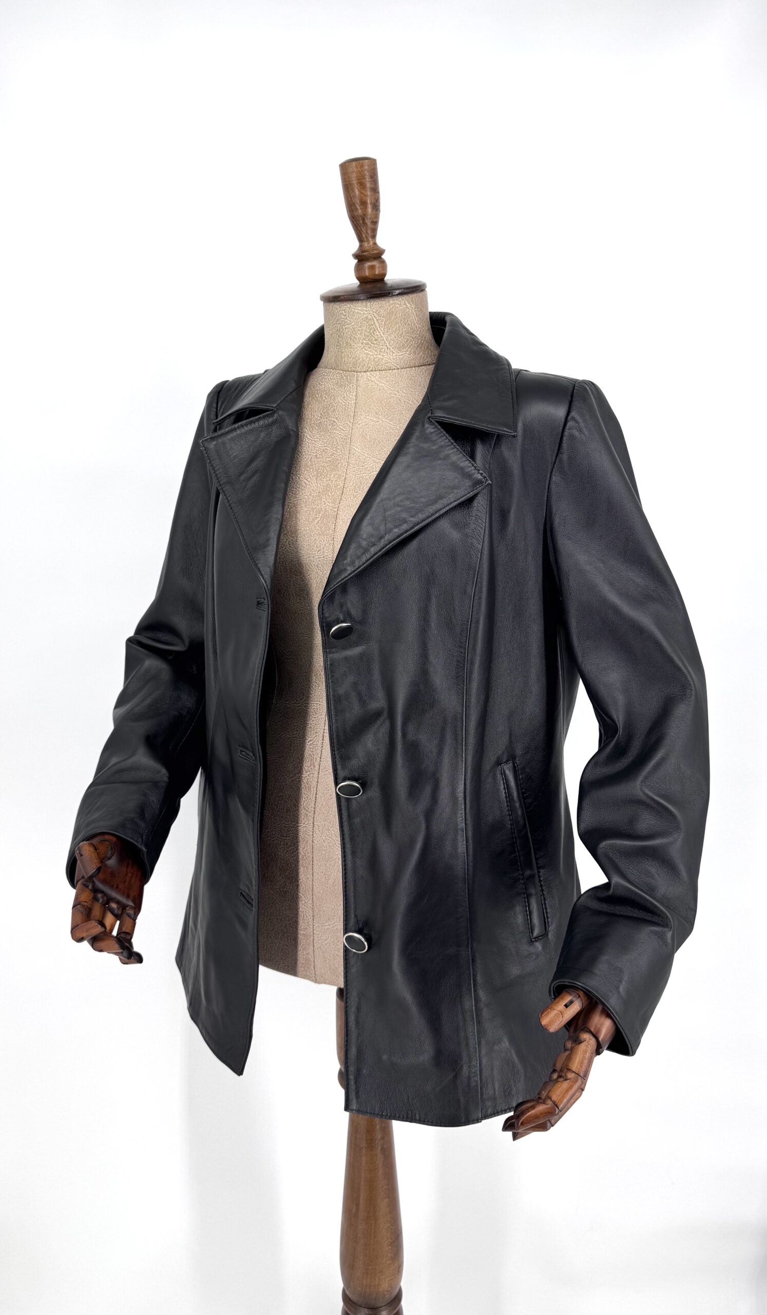 Класическо дамско сако от естествена агнешка кожа в черен цвят.