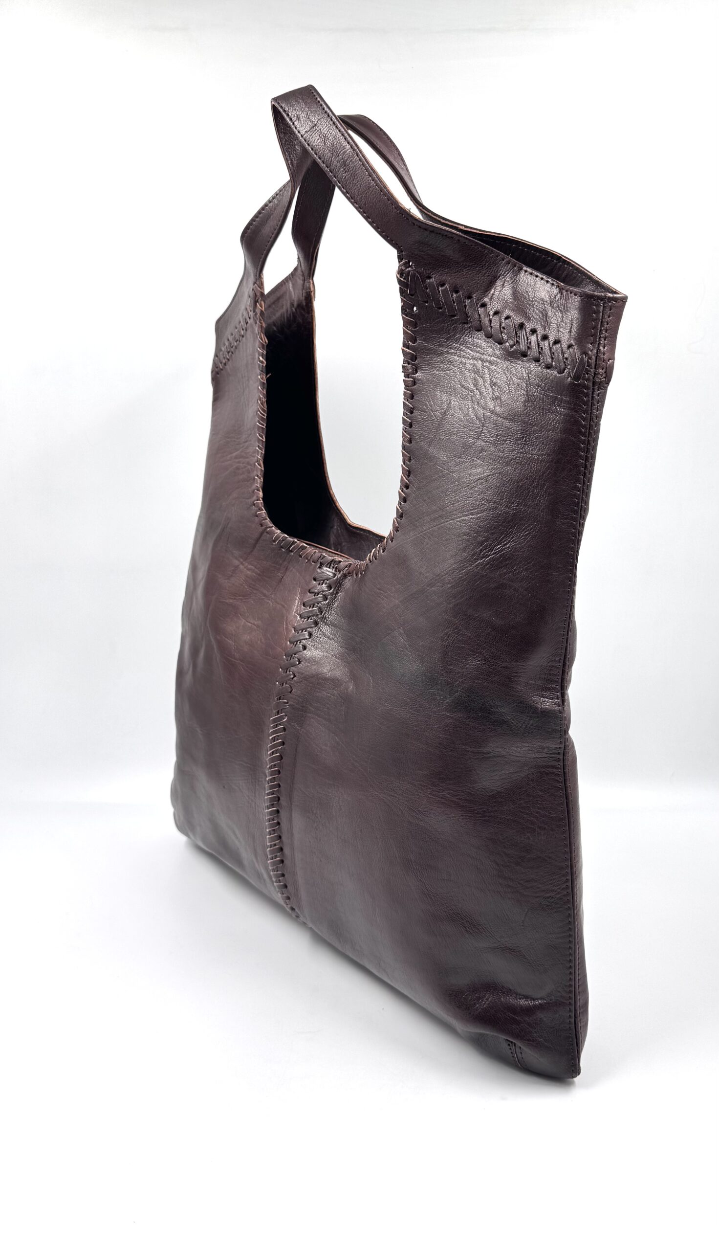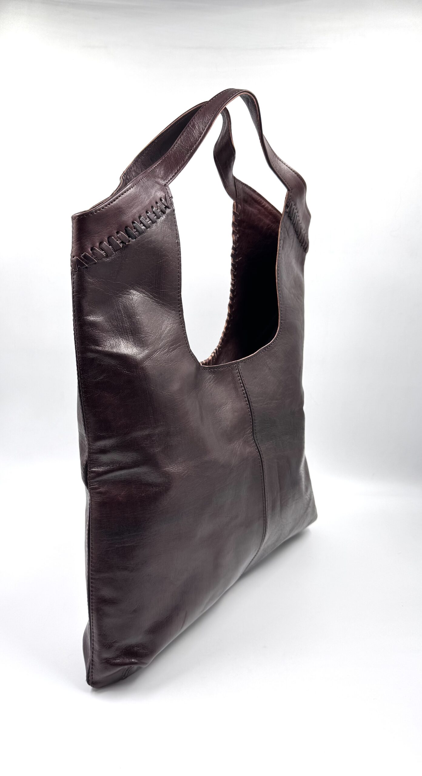 Голяма дамска чанта от естествена кожа в тъмнокафяв цвят.