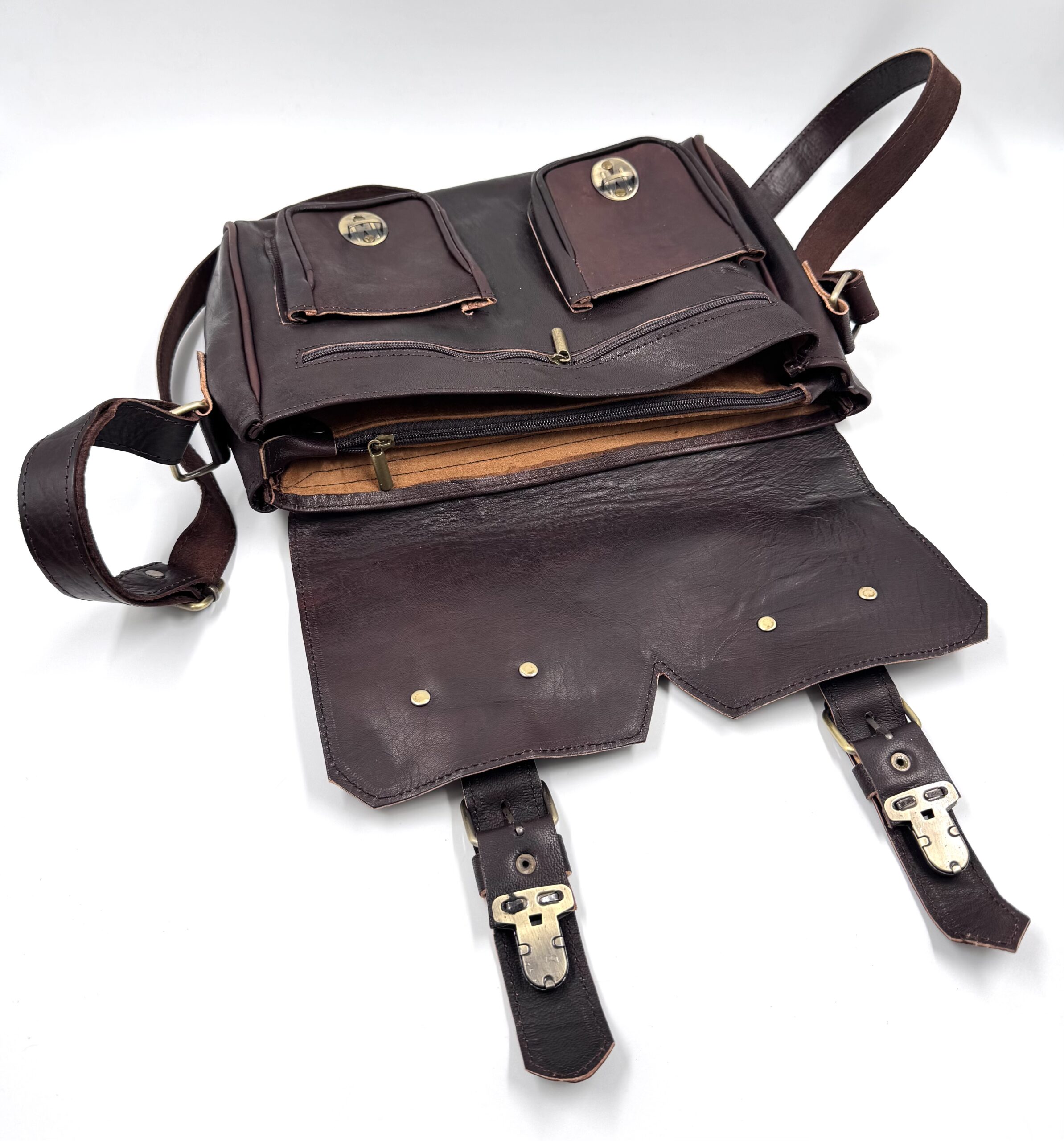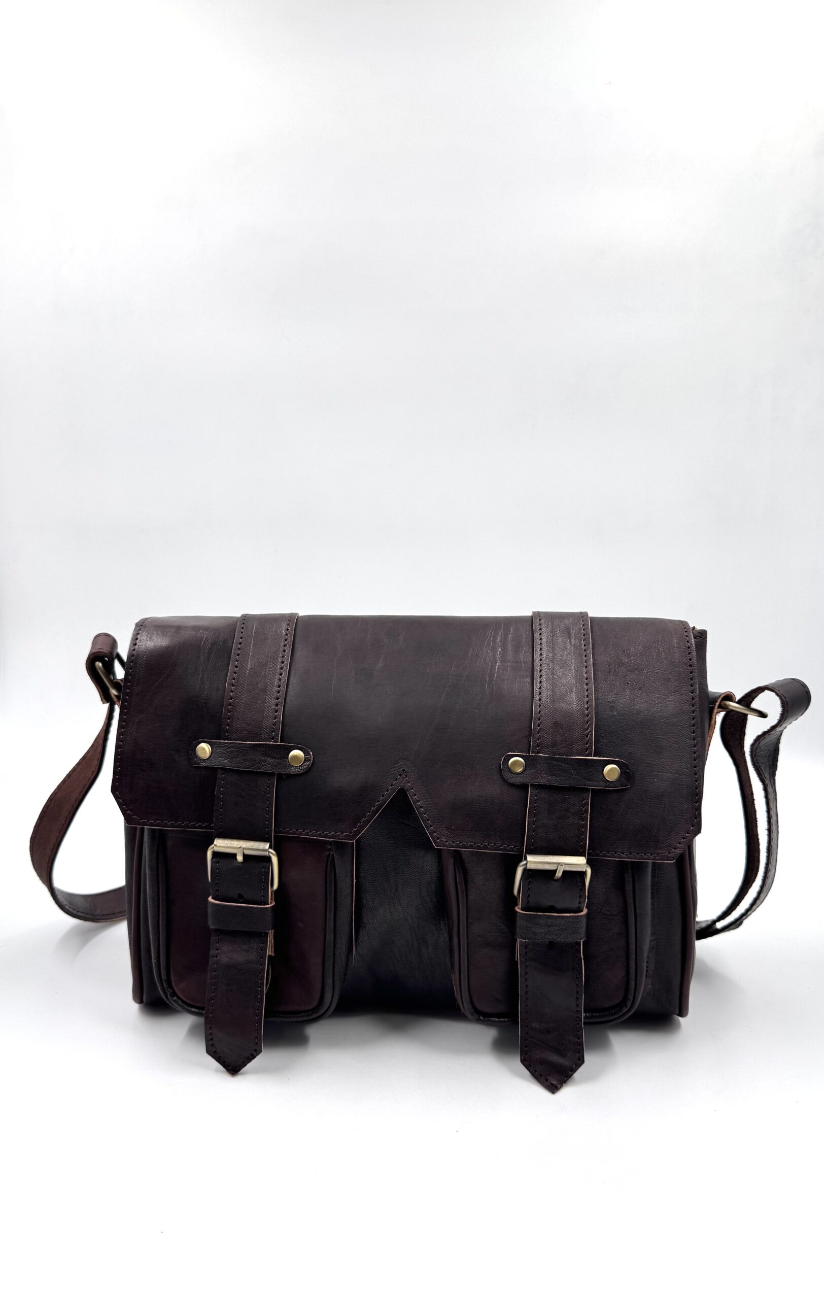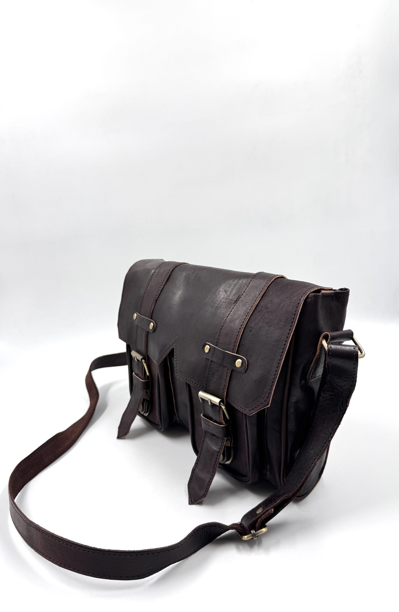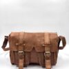 Унисекс винтидж чанта през рамо от естествена кожа в тъмнокафяв цвят.