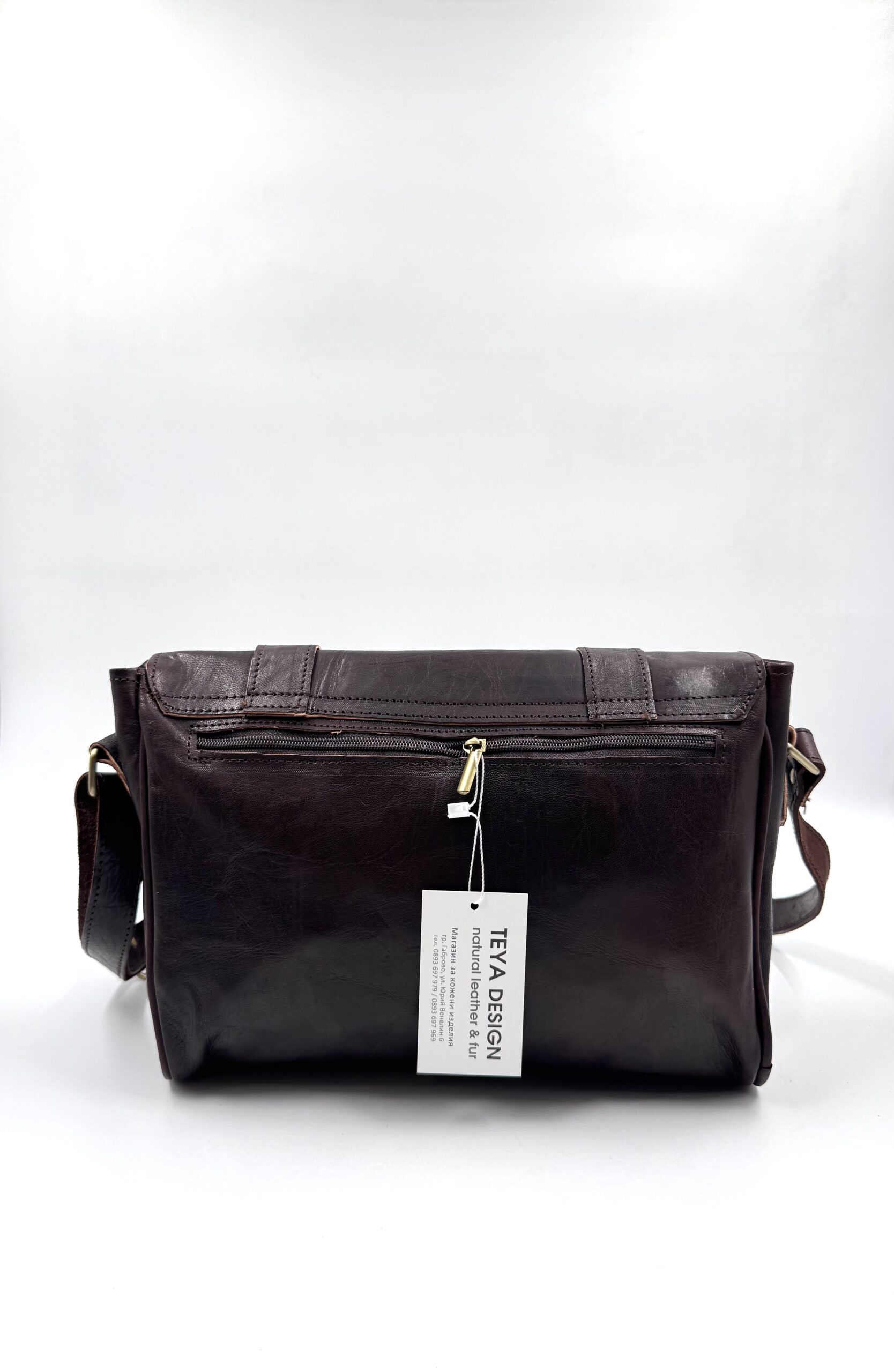 Голяма унисекс чанта от естествена кожа в тъмнокафяво 0299-3