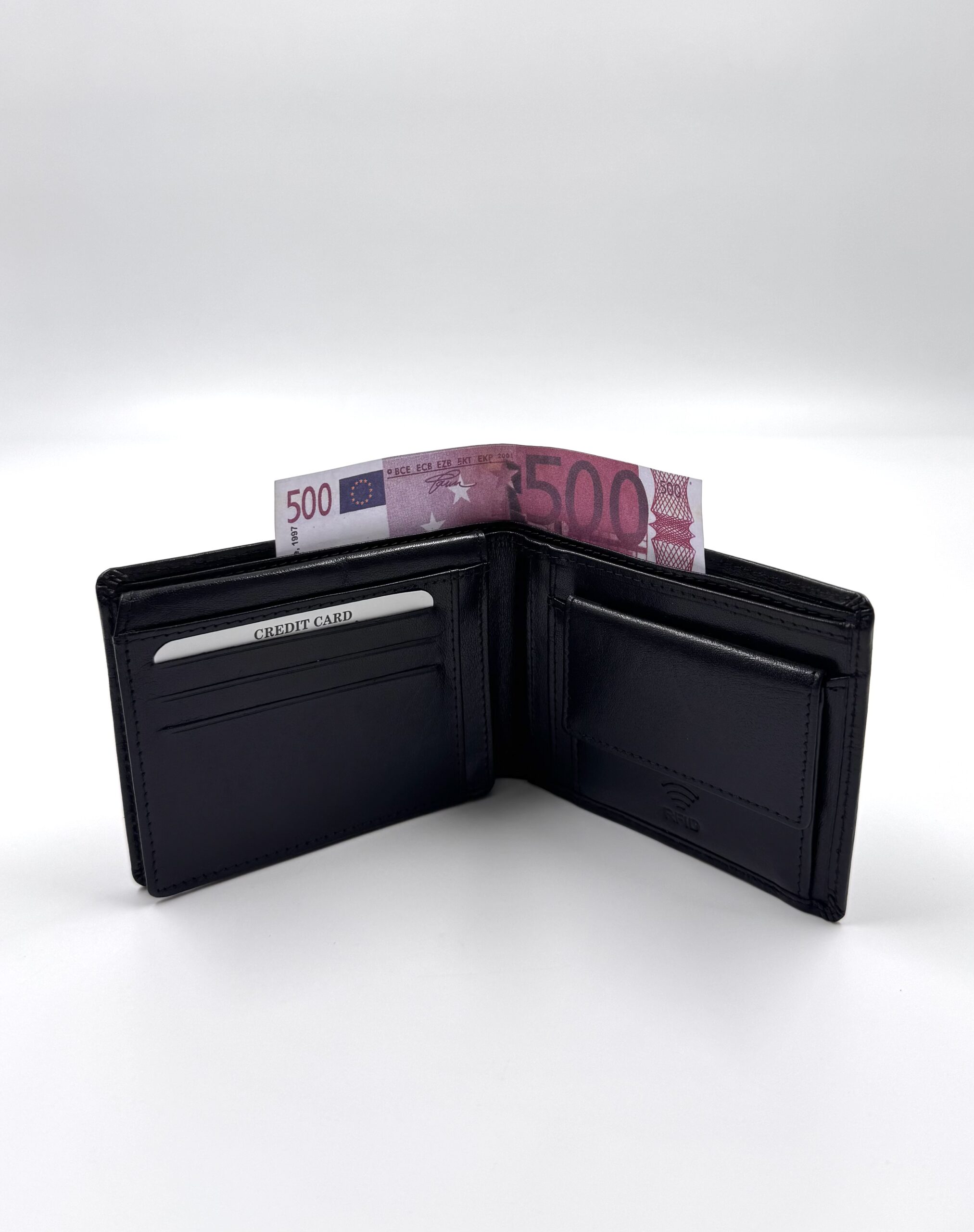 Голям мъжки портфейл от естествена кожа в черно 3-991