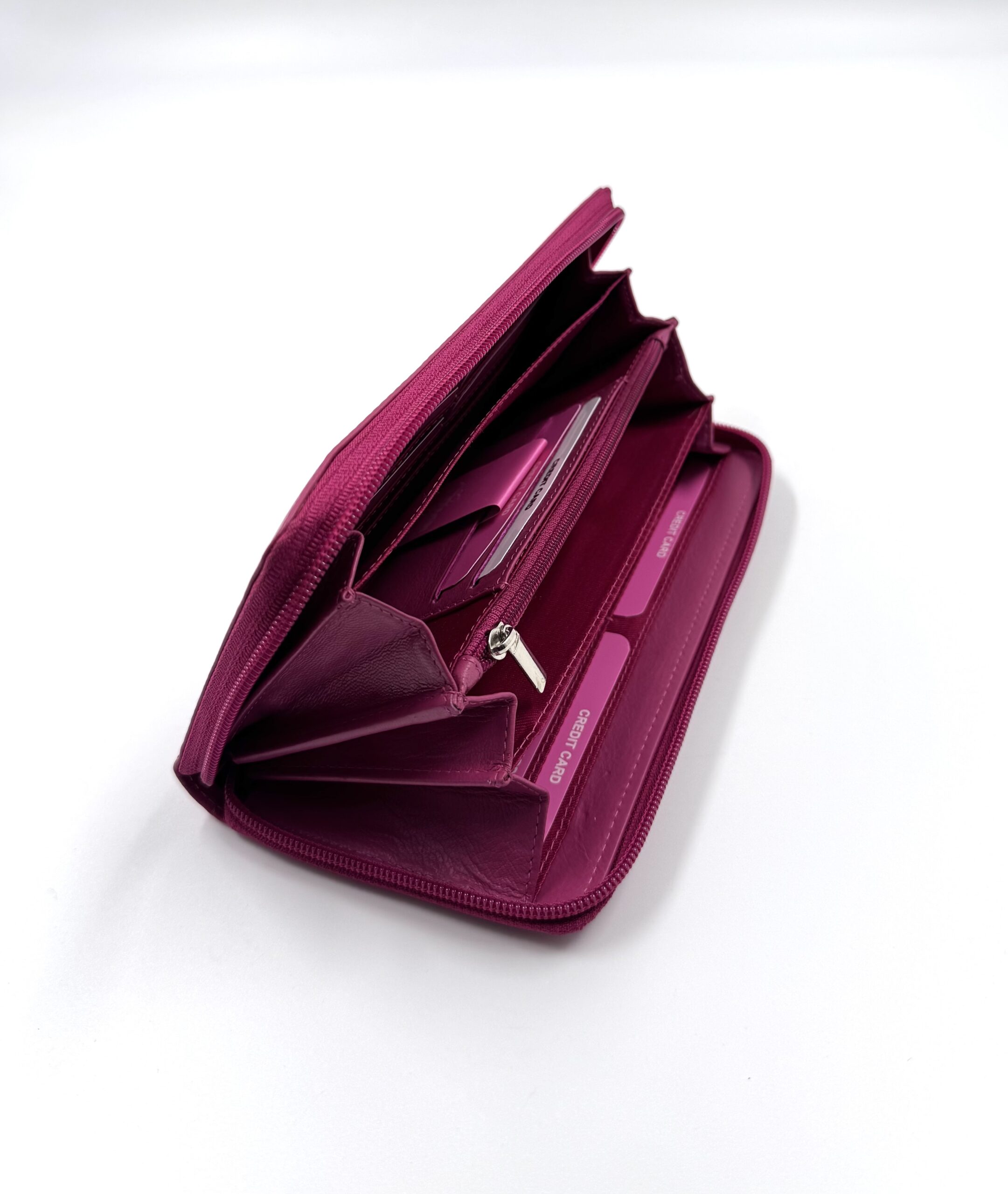 Портфейла разполага с четири прегради за банкноти, 15 отделения за лични документи или карти, едно отделение с цип за монети.