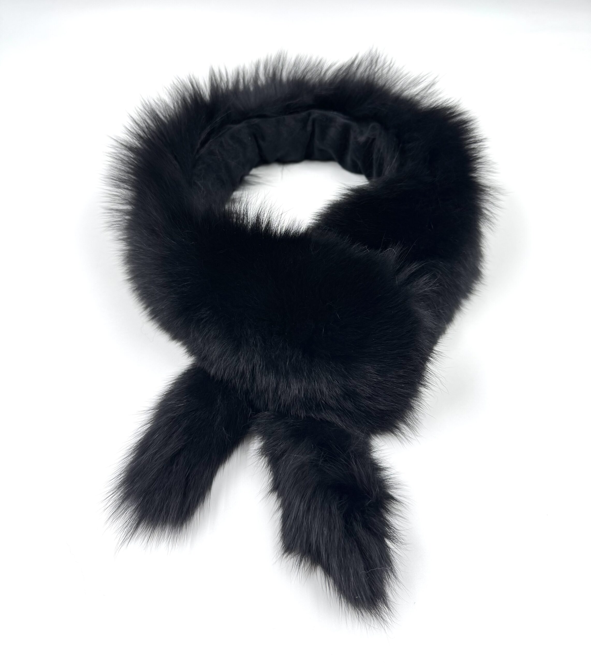 Луксозна дамска шал яка от естествен косъм на лисица в черен цвят.