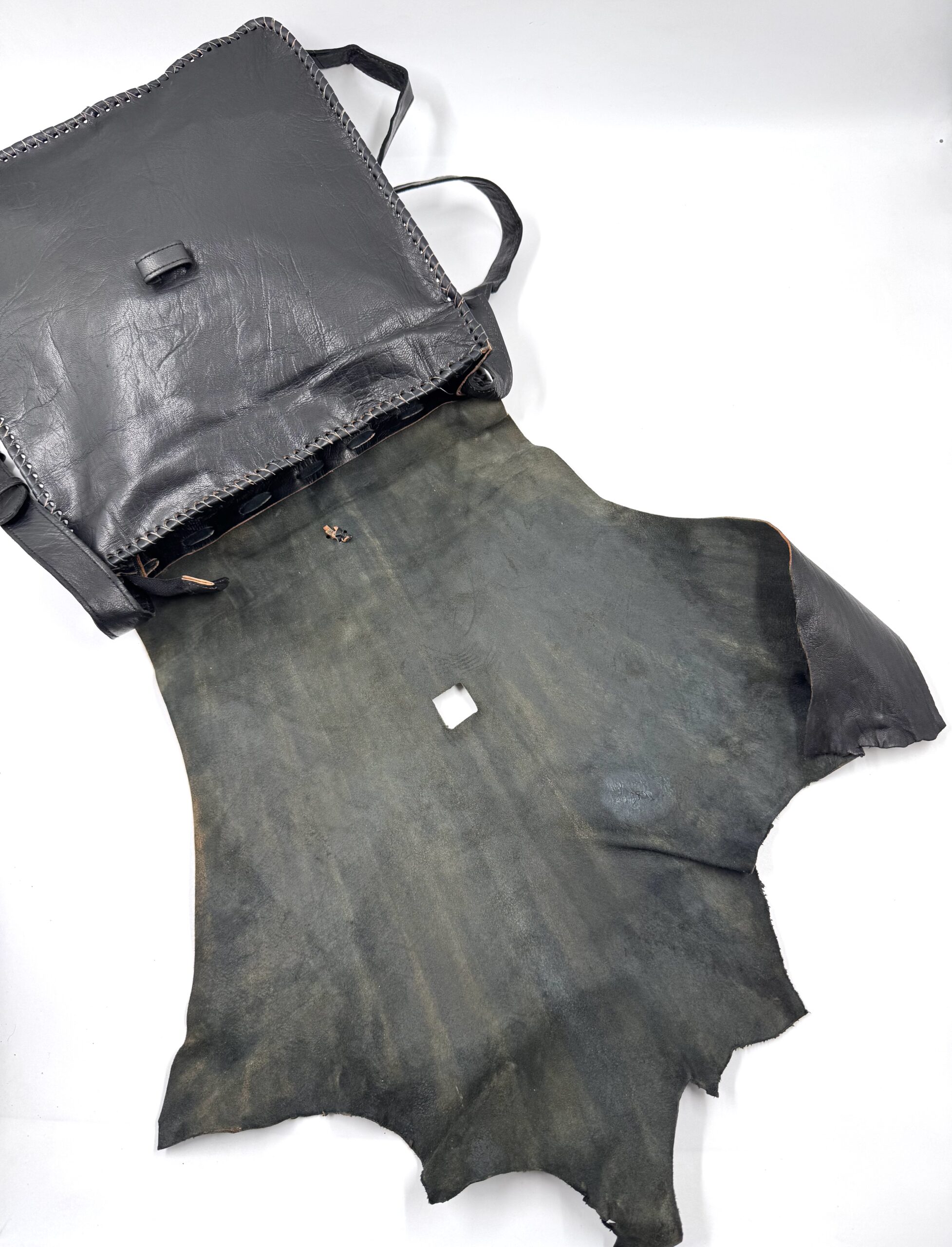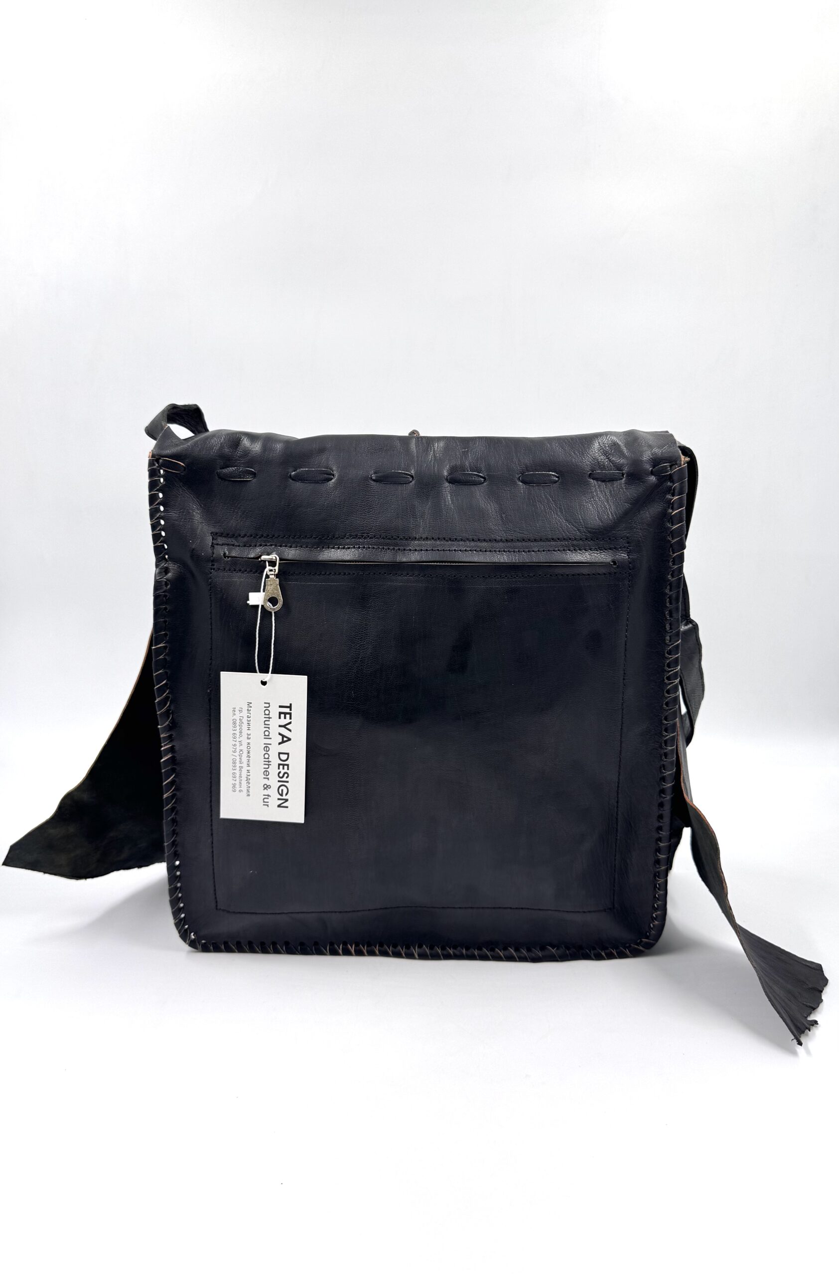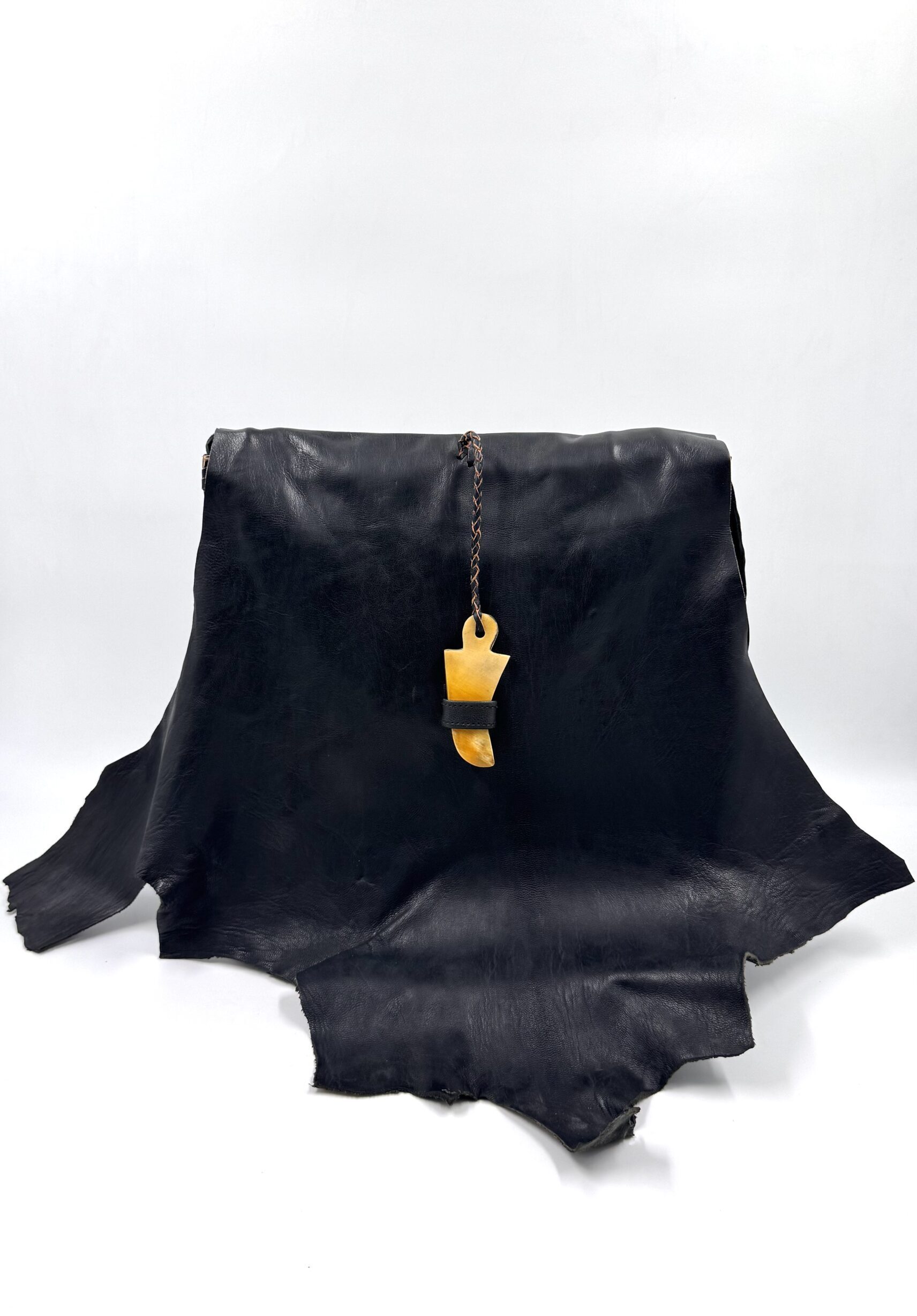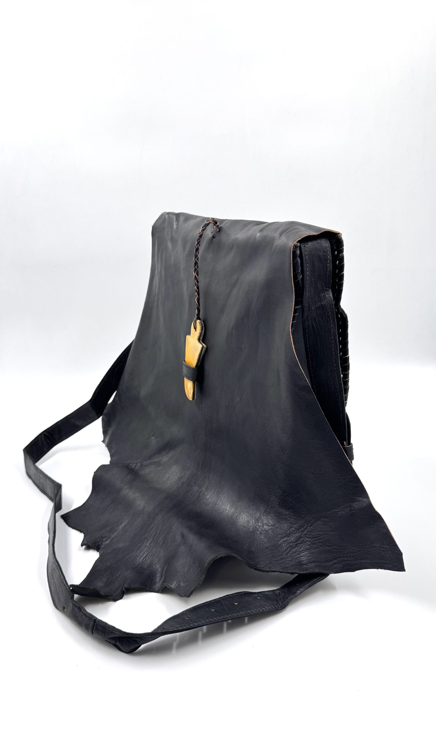 Уникална чанта през рамо от естествена кожа листо и рог в черен цвят.