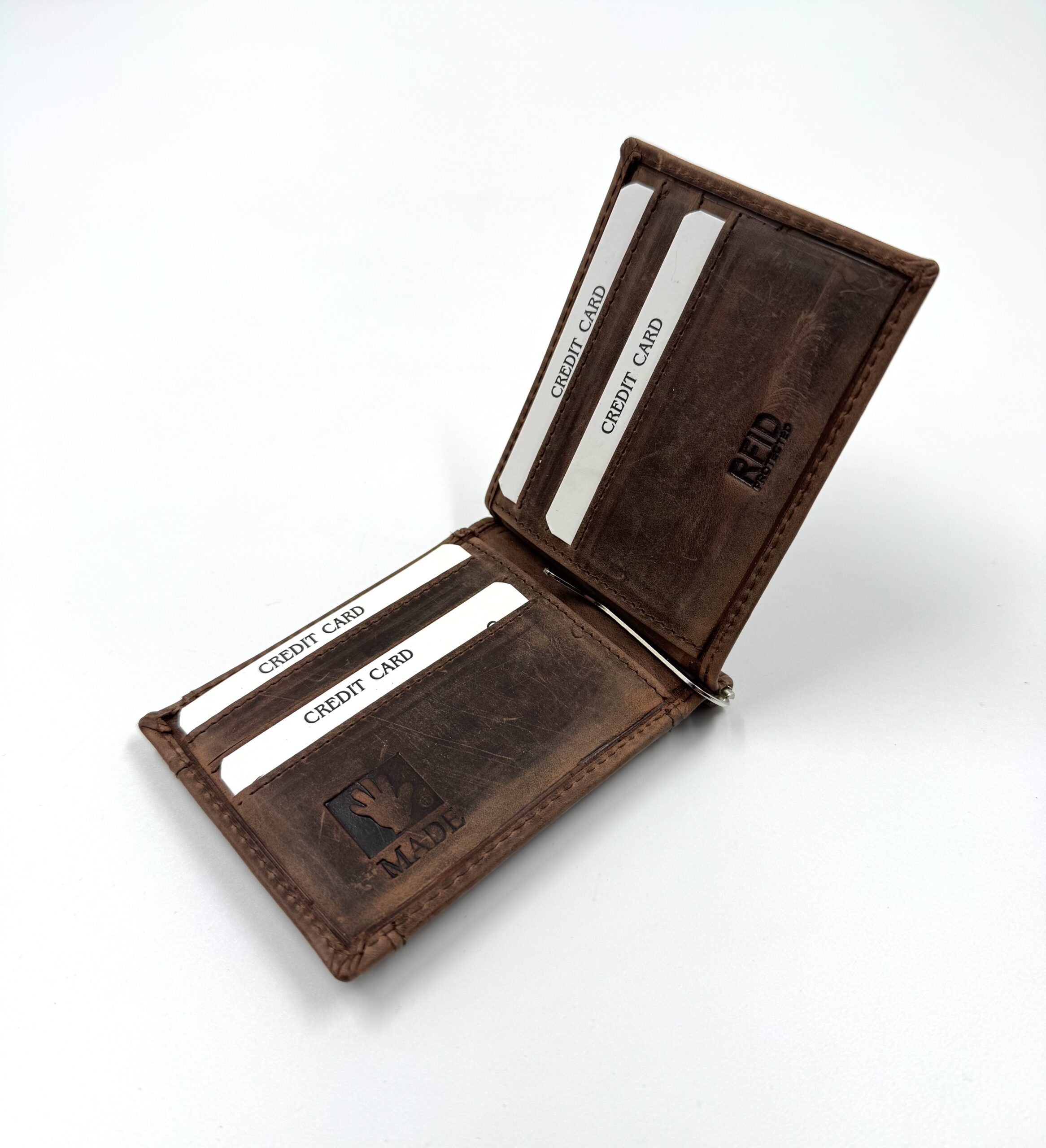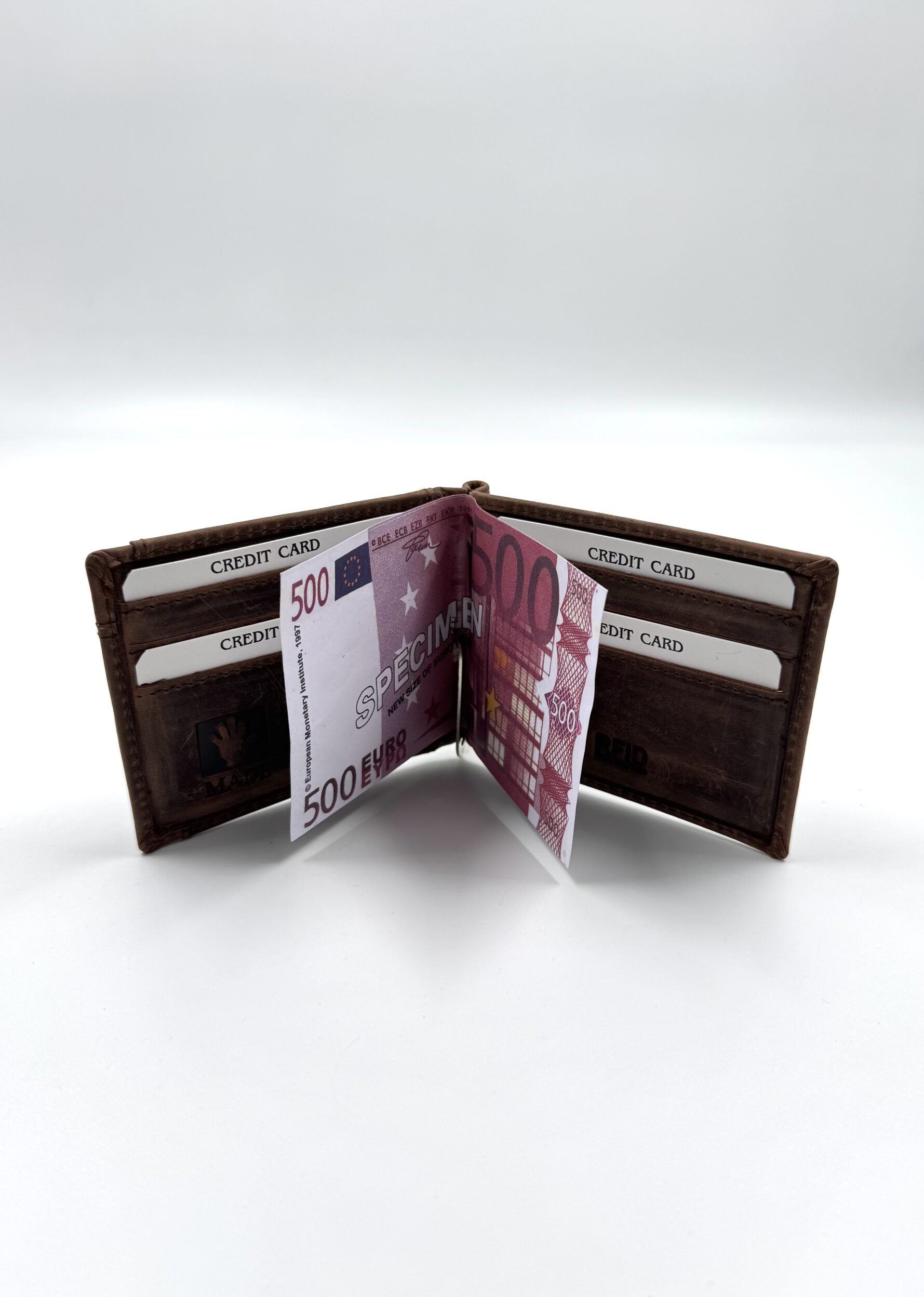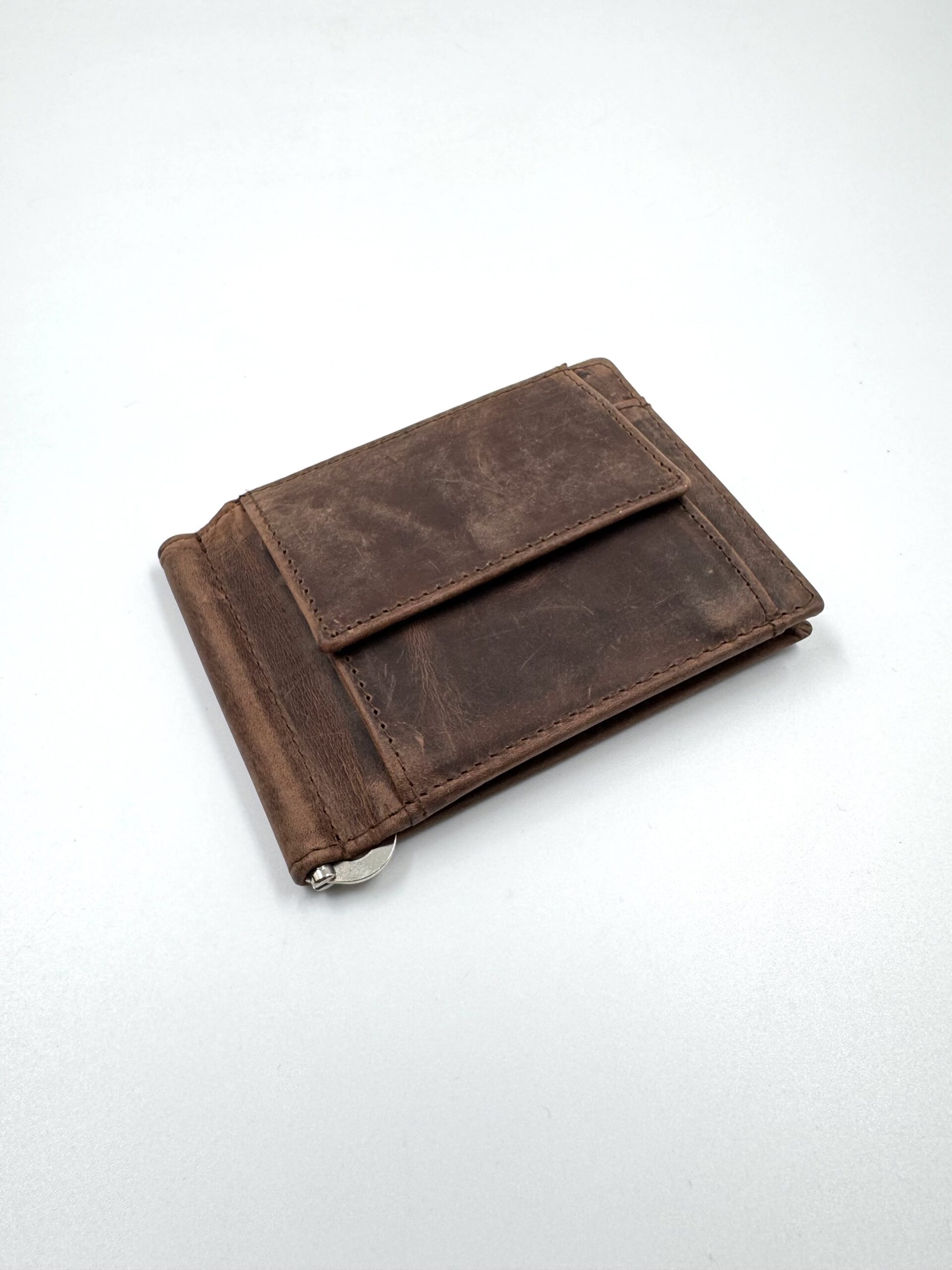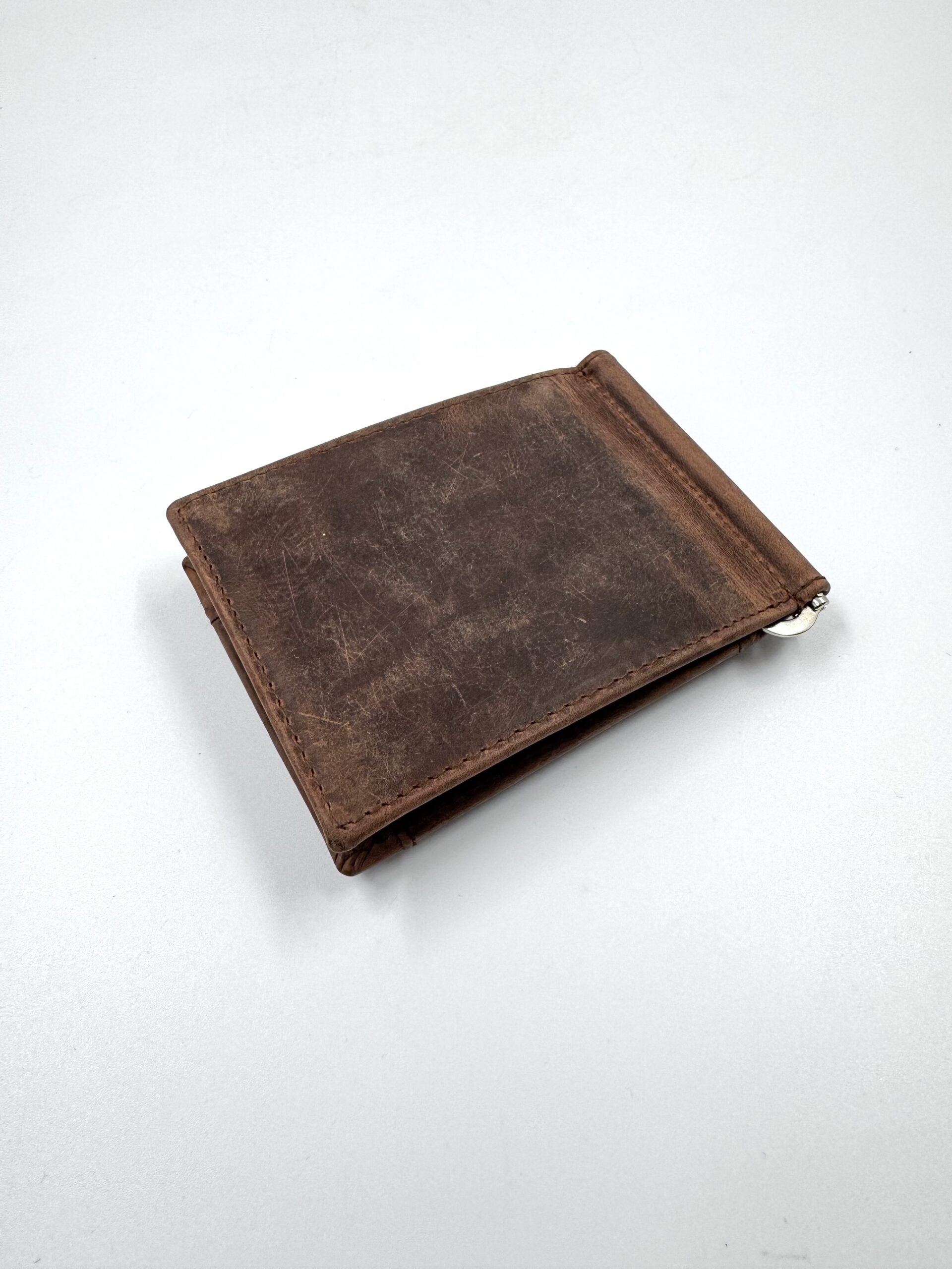 Мъжки портфейл от естествена Хънтър кожа с щипка в кафяв цвят.