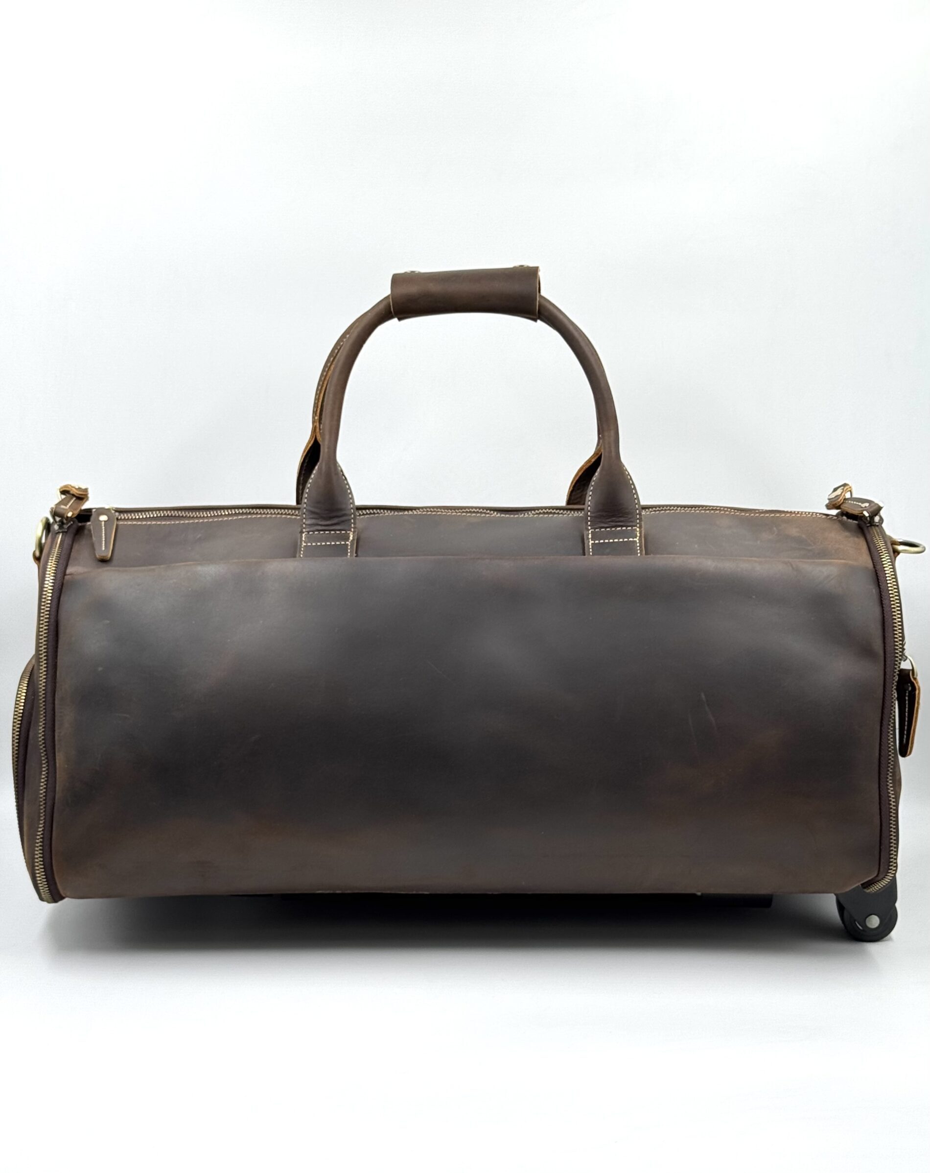 Пътна чанта- гардероб от естествена маслена кожа в тъмнокафяв цвят.