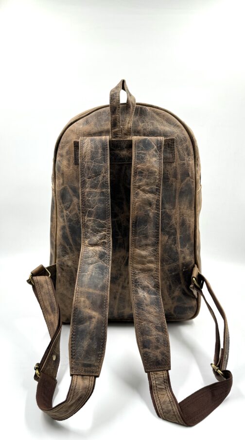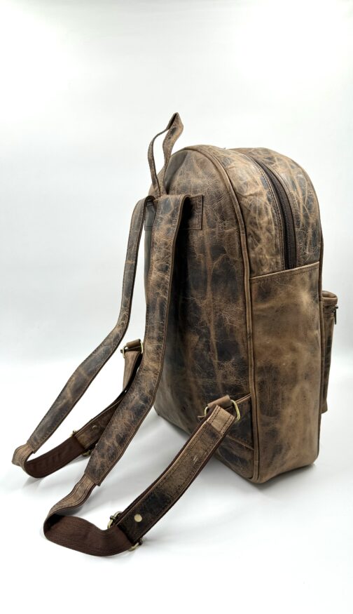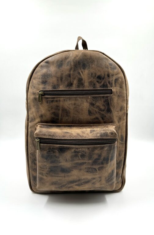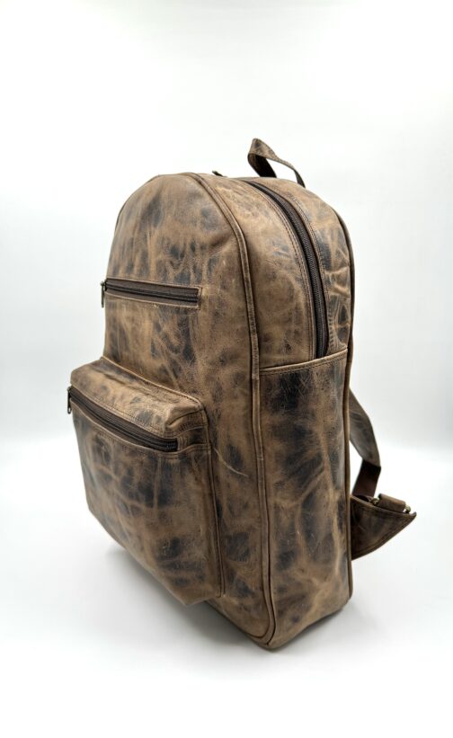 Голяма унисекс раница от естествена кожа със състарен ефект в кафяв цвят.